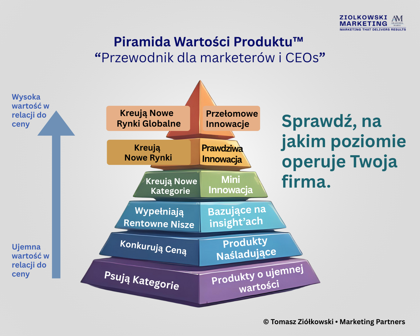 Piramida Wartości Produktu to kompas dla marketerów i CEO – pokazuje, gdzie naprawdę powstaje wartość, a gdzie tylko iluzja innowacji.